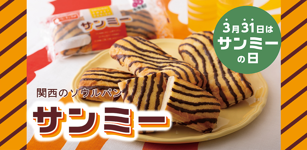 クリームをサンドしたパンに、ケーキ生地を被せて線描きチョコをトッピング。 3つの味(三味)が楽しめる、自慢のデニッシュパンです。