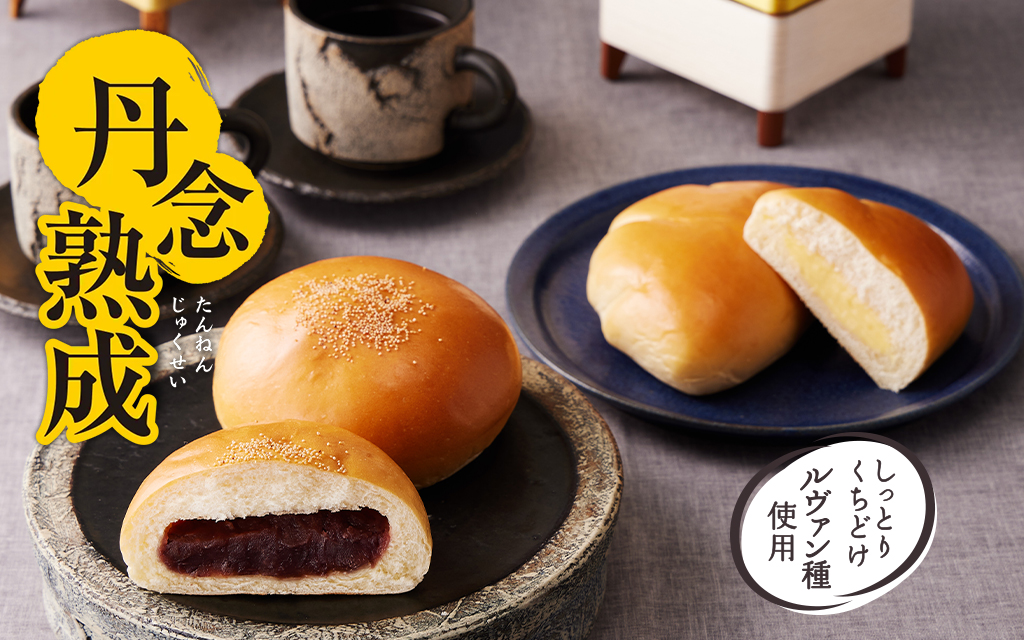 ルヴァン種を使用し湯種製法との相乗効果でよりしっとり、柔らか食感へ。バターの風味が香る、ほんのり甘い小麦本来のおいしさを、一層お楽しみいただけます。