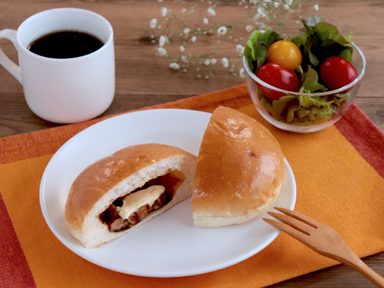 ダイス状のチキンに照り焼きソースを絡めてパン生地で包み、マヨネーズ風味ソースを注入しました。