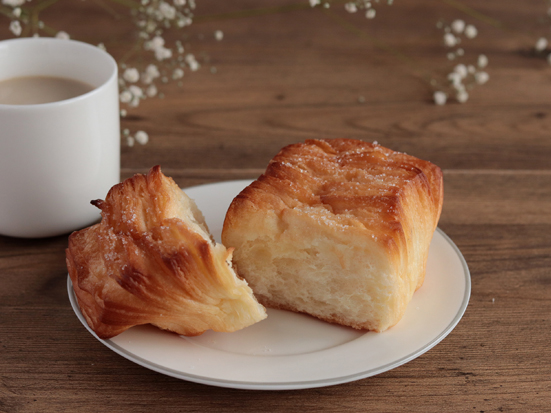 発酵バター入りマーガリンを折り込み、シュガーマーガリンをトッピングして焼き上げました。