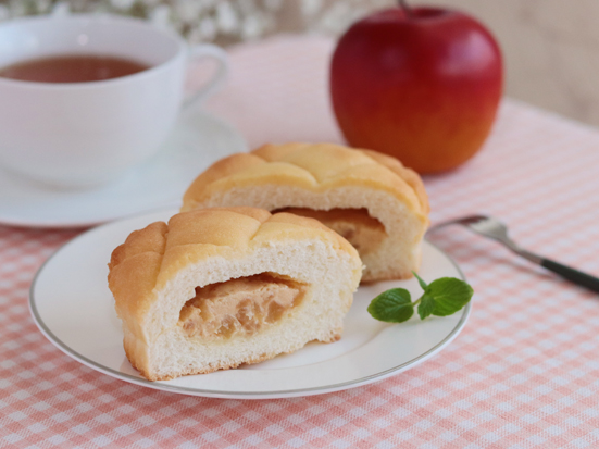 シナモン香るアップルパイのフィリングを包んだメロンパンです。