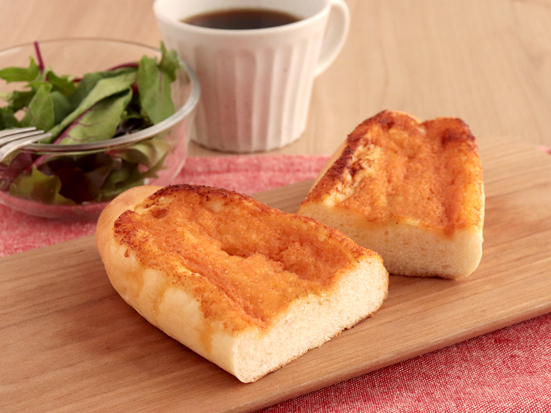 明太子とマネーズ風味ソースを合わせたコクあるフィリングをトッピングして焼き上げました。