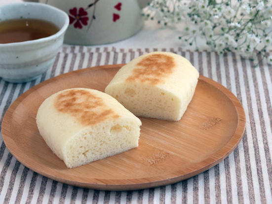 もちもち食感の白い蒸し生地に焼き目を付けた香ばしい蒸しパンです。