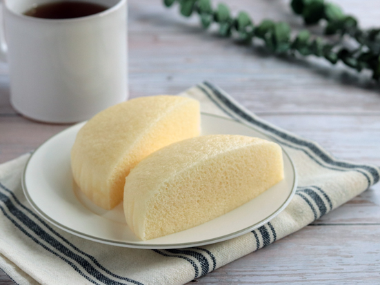 12時間以上熟成させたミルク生地をしっとり蒸し上げました。北海道産生乳使用の脱脂濃縮乳を配合しています。