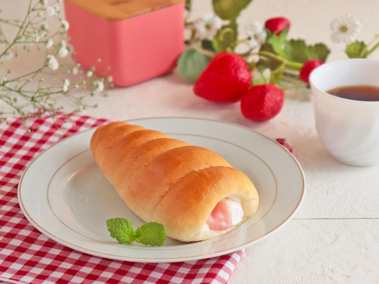 いちご味フラワーペースト(植物油脂、砂糖、水あめ、マルトオリゴ糖、麦芽糖、異性化液糖、澱粉、乳たん白、脱脂粉乳、カラメルソース、いちご濃縮果汁、その他)(国内製造)、小麦粉、ミルク味ホイップクリーム、砂糖、ショートニング、卵、発酵種、パン酵母、油脂加工品、食塩、マーガリン、発酵風味料、乳等を主要原料とする食品/加工デンプン、グリシン、ソルビット、乳化剤、香料、増粘多糖類、保存料(ソルビン酸)、酸味料、ベニコウジ色素、イーストフード、セルロース、リン酸塩(Na)、pH調整剤、ビタミンC、(一部に乳成分・卵・小麦・大豆を含む)