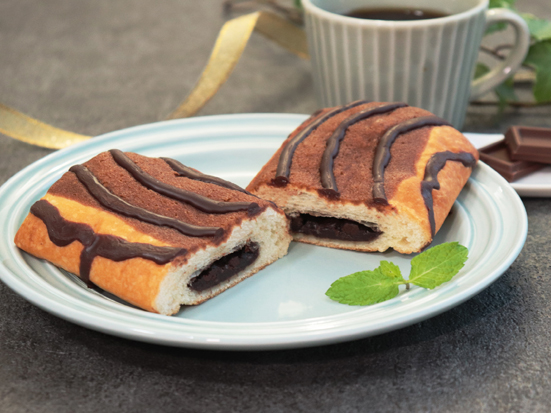 小麦粉(国内製造)、チョコレートフラワーペースト、準チョコレート、マーガリン、果糖ぶどう糖液糖、ショートニング、卵、砂糖、パン酵母、食塩、乳等を主要原料とする食品、発酵風味料/糊料(加工デンプン、増粘多糖類)、グリシン、乳化剤、pH調整剤、保存料(ソルビン酸K)、香料、着色料(カラメル、カロチノイド)、ビタミンC、酸化防止剤(ビタミンE)、(一部に乳成分・卵・小麦・大豆を含む)
