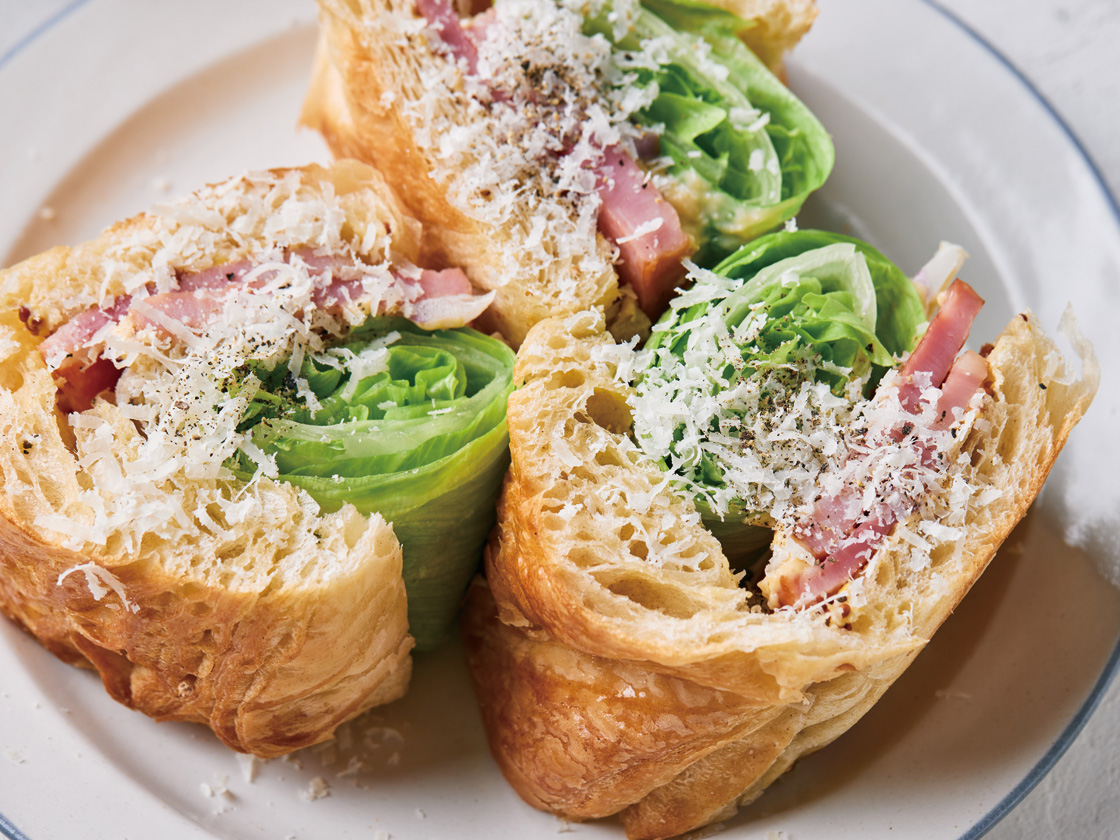 シーザーサラダのバゲットクロワッサンサンド