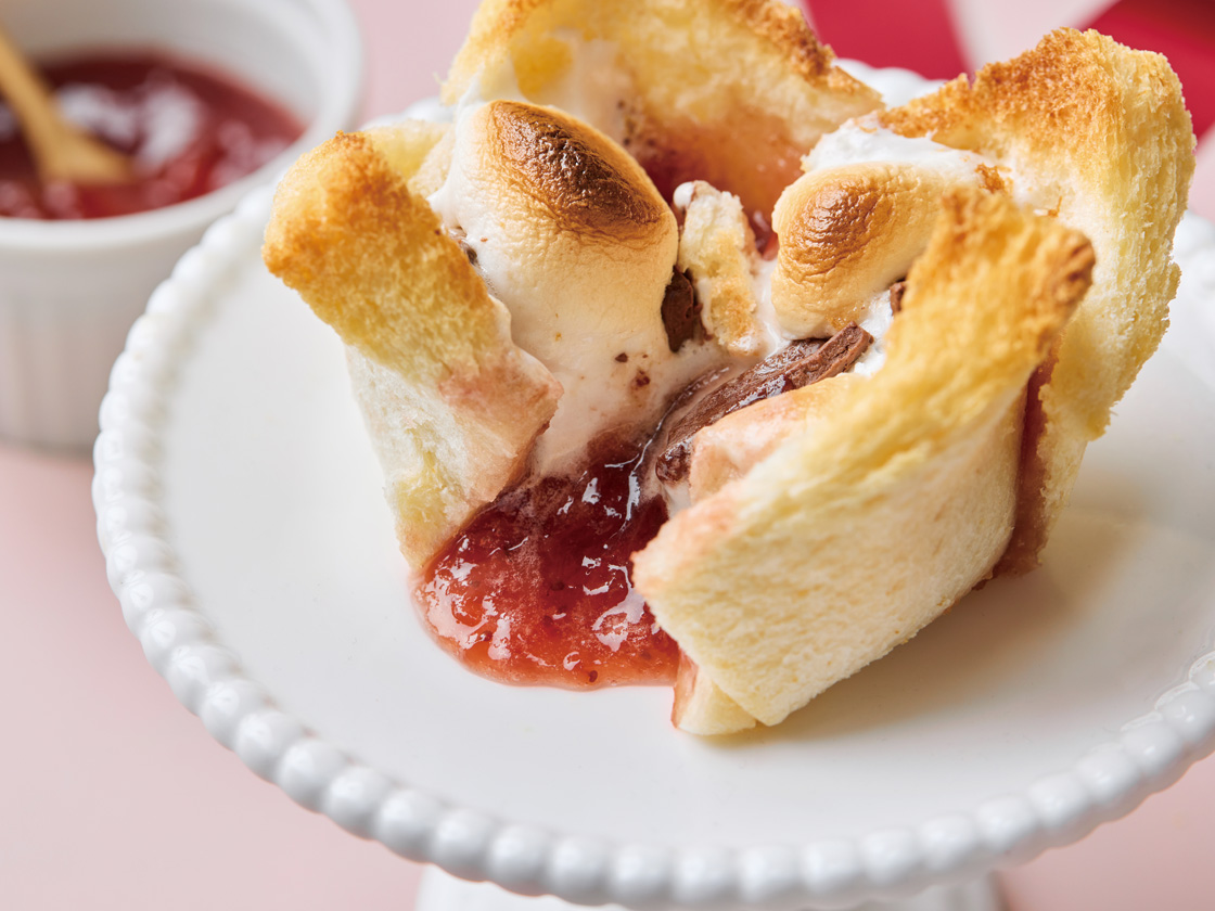チョコマシュマロトーストは、苺ジャムを入れる事で甘ずっぱさがプラスされ、トロットした食感と味のアクセントになります。