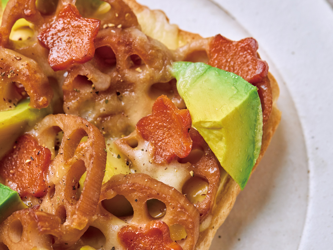 レンコンきんぴらとアボカドのマヨチーズトースト