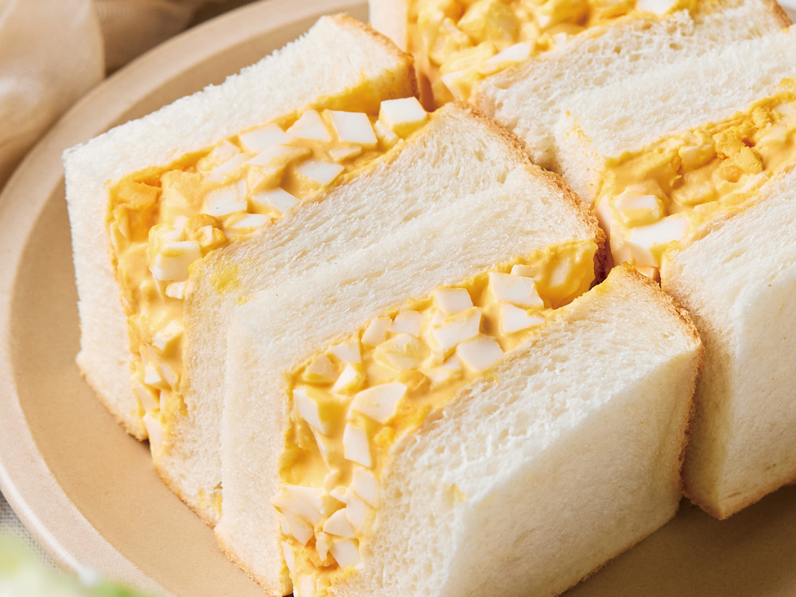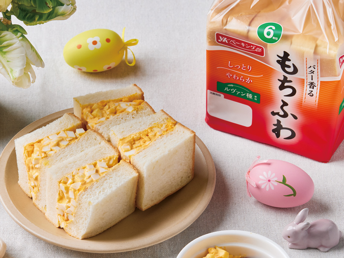 ジューシーなたまごサラダと、もっちりふんわり食感のもちふわ食パンの相性抜群!優しい味わいのサンドイッチです。